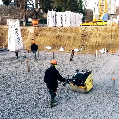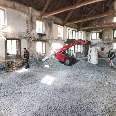 Le granulat MISAPOR peut être utilisé pour l‘isolation du périmètre ou des éléments de construction verticaux comme les murs de caves, les fondations complètes sous radier, dalle de béton de chaux isolante, mais aussi en tant que remblai allégé pour des surfaces accessibles aux véhicules et soumises à des charges normales.