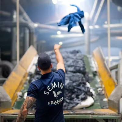 - Engagé : composé à 100% de vêtements recyclés