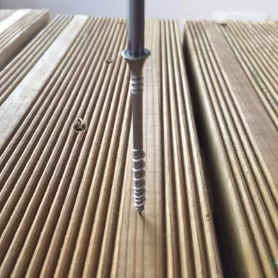 Vis terrasse SV en acier inoxydable A2 ne nécessitant aucun pré-perçage pour la fixation de lames bois résineux sur lambourdes bois résineux (pin sylvestre, sapin, épicéa, douglas, red cedar).